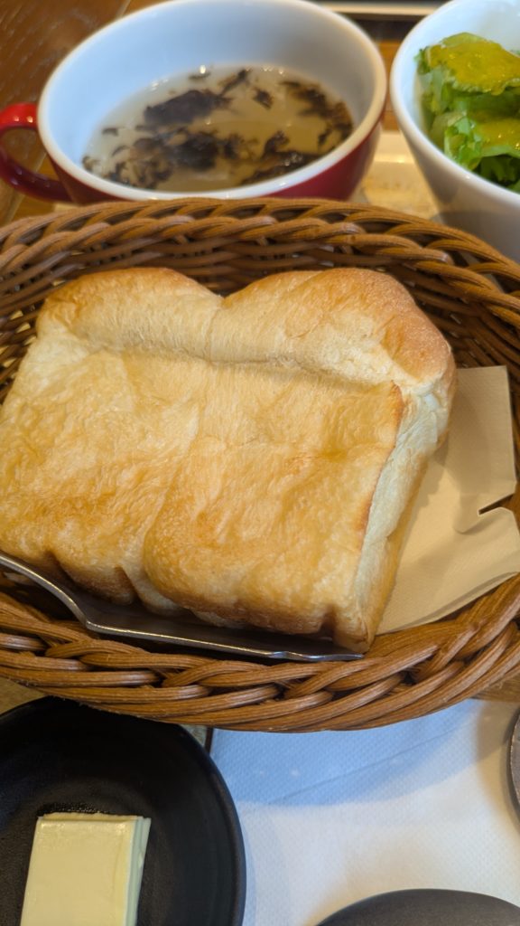 選べるセットは、ふっくらとした山高パンとご飯の2つから選択することになっています。